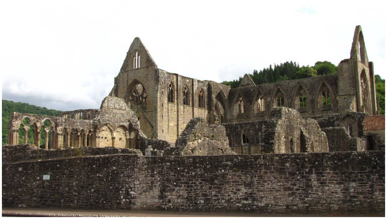 Tintern Abbey is een kloosterruïne in Wales. De abdij werd op 9 mei 1131 gesticht door Walter de Clare, heer van Chepstow. We pakken even een momentje van rust, maar als we het terrein van de abdij op willen blijkt het al bijna sluitingstijd te zijn. Ook begint het weer te regenen. Het wordt dus, voor de 2e keer vandaag, alleen de buitenkant van deze beroemde abdij bekijken. Wat later komen er nog een aantal buikdanseressen een kleine voorstelling geven op de parkeerplaats naast ons.
