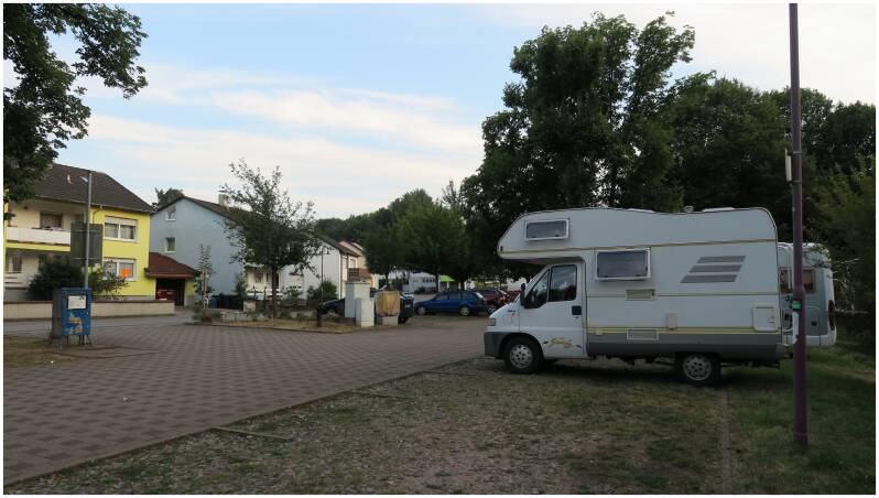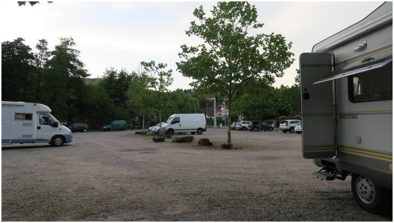 De camperplaats op de Parking, bij het openlucht zwembad in Wissembourg.