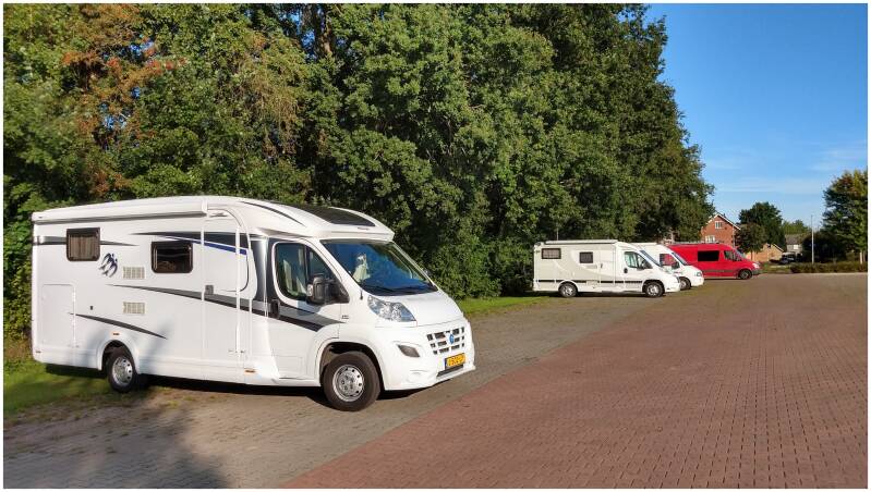 Onze slaapplaats voor deze nacht wordt Parking Nieuwleusen. Er staan al een paar campers, maar er is nog ruimte genoeg.