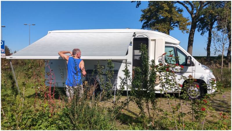 Veel dingen in de camper zijn prima: de douche en het zonnepaneel werken perfect, het bed slaapt heerlijk, ruimte is er in overvloed en de garage is een mooie plek voor uitdampende wandelschoenen. Morgen wordt de luifel uitgeprobeerd, hopen dat die ook onder de laatste categorie gaat vallen😀.