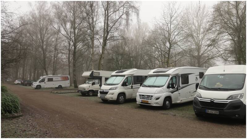 Op een half uur rijden is er een camperplaats met stroom, dus daar rijden we naar toe, rustig vanwege de mist, en om kwart over 6 staan we in Rhede op de Kirmesplatz. Het was uiteindelijk weer echt genieten vandaag.