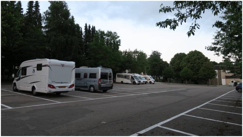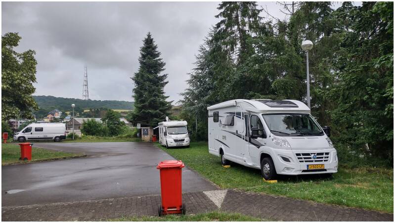Net over de grens in Dudelange zagen we dat er op onze vertrouwde camperplaats nog plaats was, dus brachten we hier de nacht door.