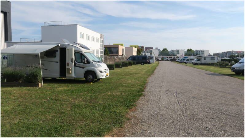 En dan op naar Wenen (88 km) waar we morgen nog een paar bezienswaardigheden willen bezoeken die we 11 jaar(!) geleden gemist hebben. We staan op de Reisemobil-Stellplatz Wien, met 167 plaatsen. Hier spoelen we het zweet van deze dag door het doucheputje en eindigt de dag met de (inmiddels) dagelijkse onweersbui.