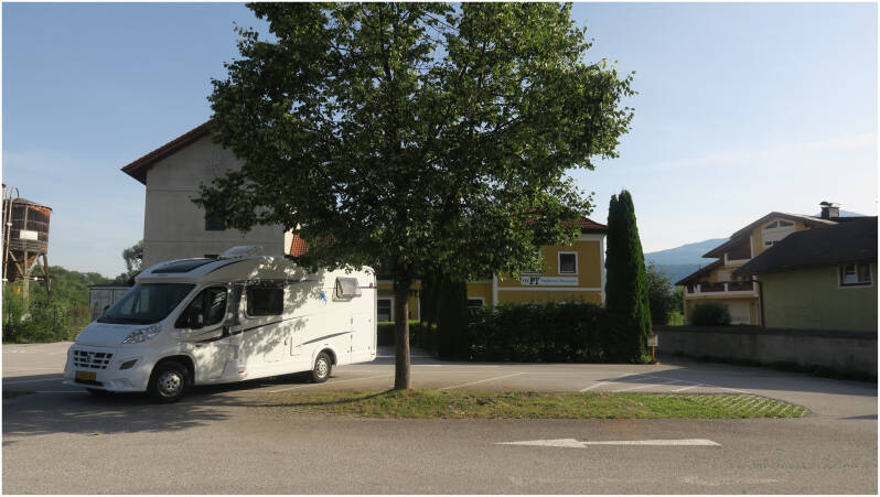De rest van de middag genieten we in rust en na het eten rijden we een stukje terug. Jawel, het moet een keer: wc zit propvol, watertank is leeg. We hebben deze middag al gebruik gemaakt van het zeer schone openbare toilet. We gaan weer entsorgen in Golling en overnachten opnieuw in Kuchl.