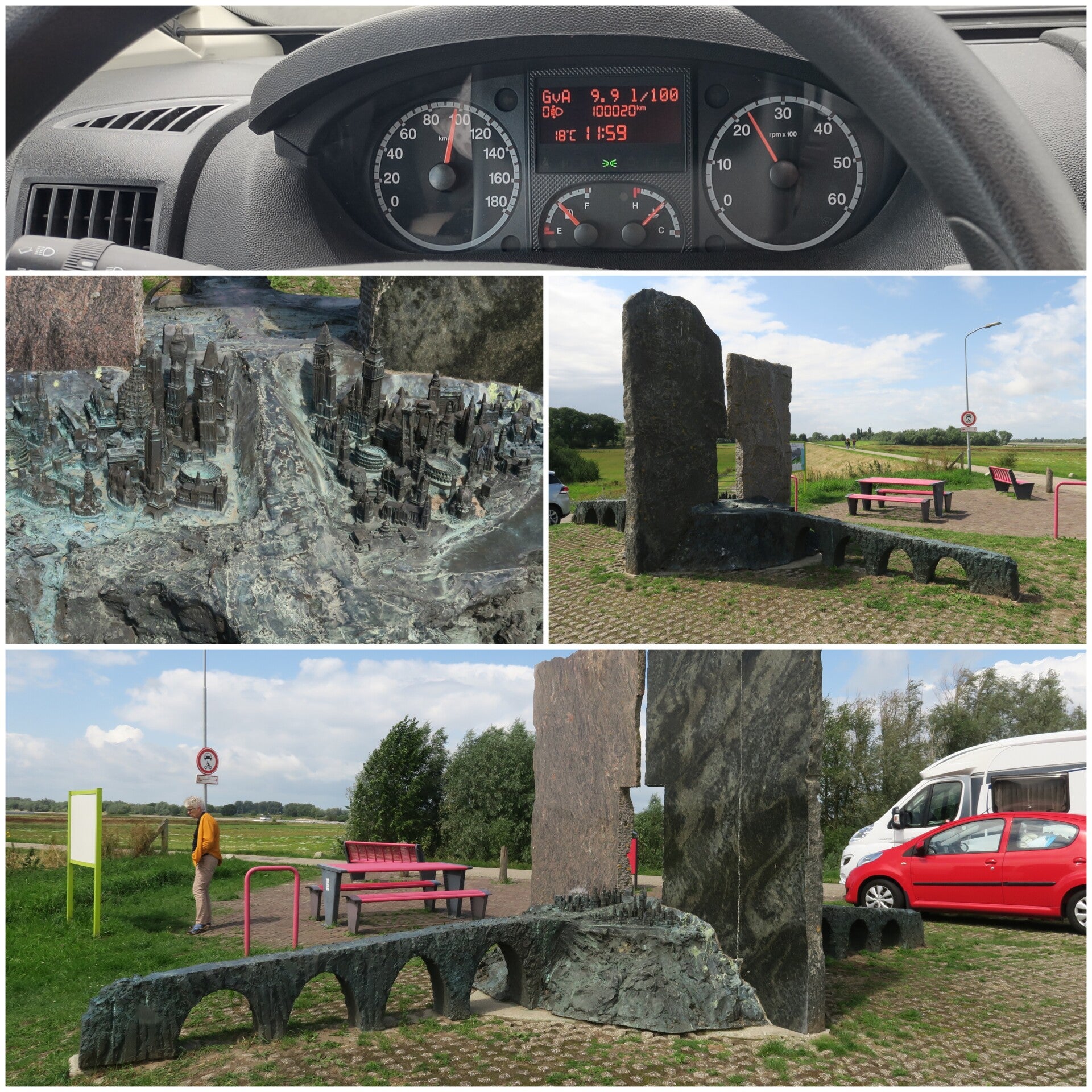 Na een heerlijk rustige nacht weer op weg en we bereiken een mijlpaal vandaag. 100.000 kilometers staan er op de teller. Net iets te laat op de foto gezet, helaas. Onze bijdrage eraan is ongeveer 23.000 km geweest. Natuurlijk hopen we deze stand de komende jaren flink op te kunnen krikken.